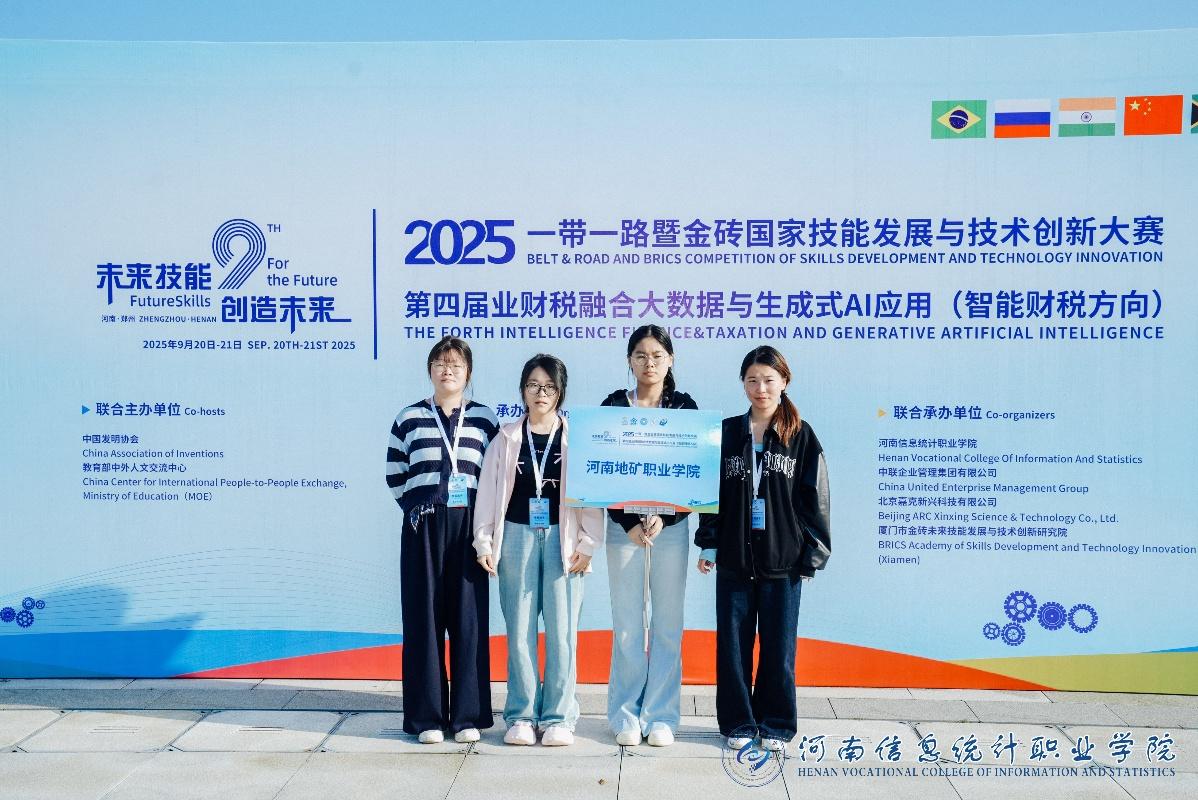 2025年9月19-20日,2025一带一路暨金砖国家技能发展与技术创新大赛“业财税融合大数据与生成式AI应用(智能财税方向)赛项决赛在河南信息统计职业学院成功举办。全国共有84支队伍参加本次大赛,经过激烈角逐,由我院大数据与会计专业苏世娟、李想老师指导的李旦旦、张亚妮、李佳茵、张硕团队在比赛中荣获国家级二等奖,实现我院在该项赛事成绩上的历史新突破。